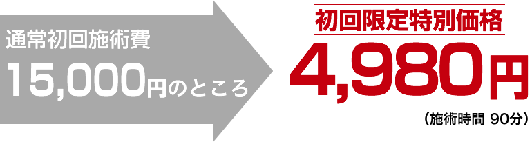 | 施術料金 | ■初回:15,000円 ※初診料金は初回のみです。 |