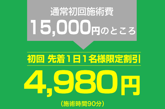 1mmも改善していなければ、初回施術料は一切いただきません。また、来院後3日以内に効果が実感できなければ、次回施術を無料でさせていただきます。